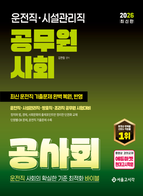 운전직 사회는 범위가 비교적 넓고, 문제 유형도 다양하기 때문에 적절한 가이드 라인이 수험전략상 굉장히 중요합니다.
